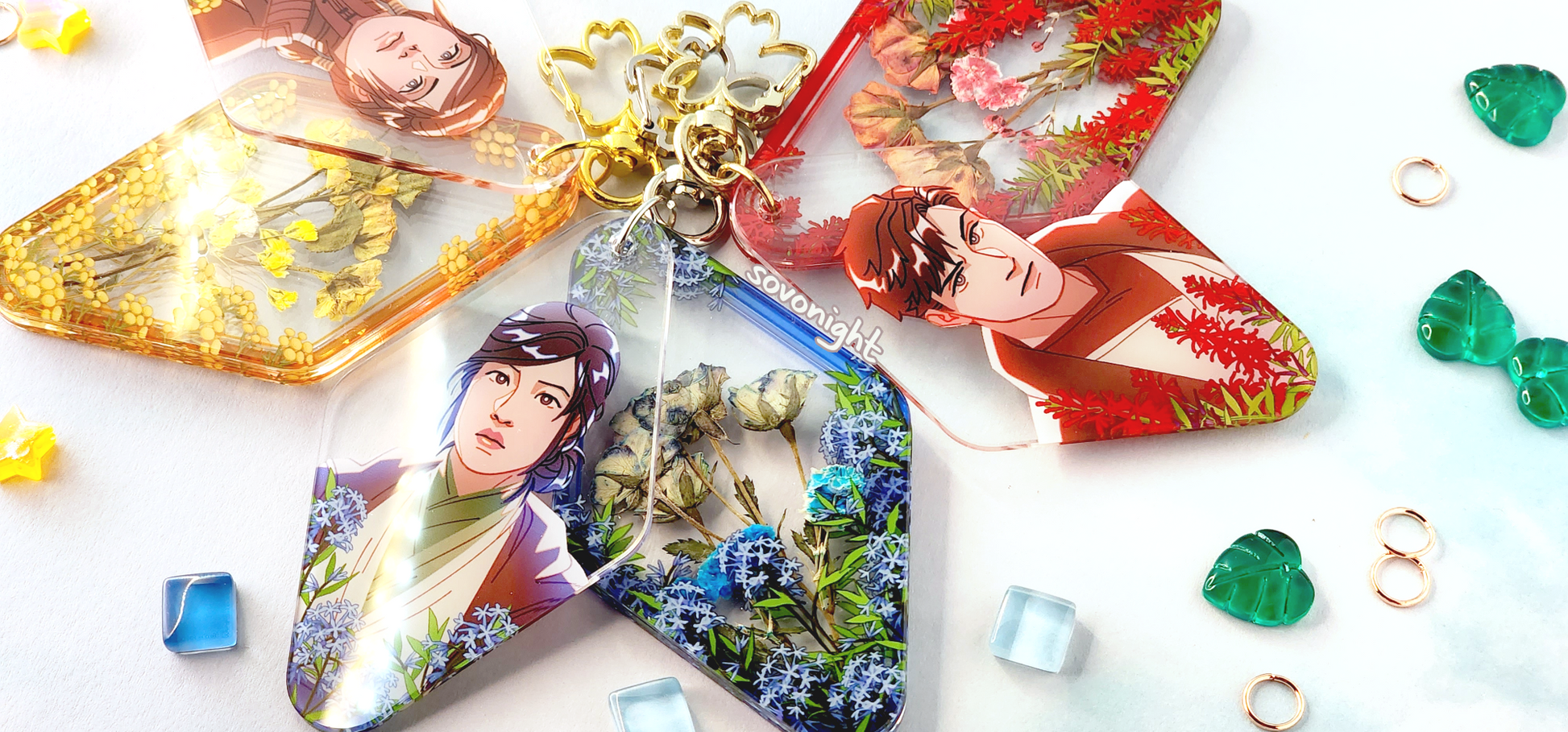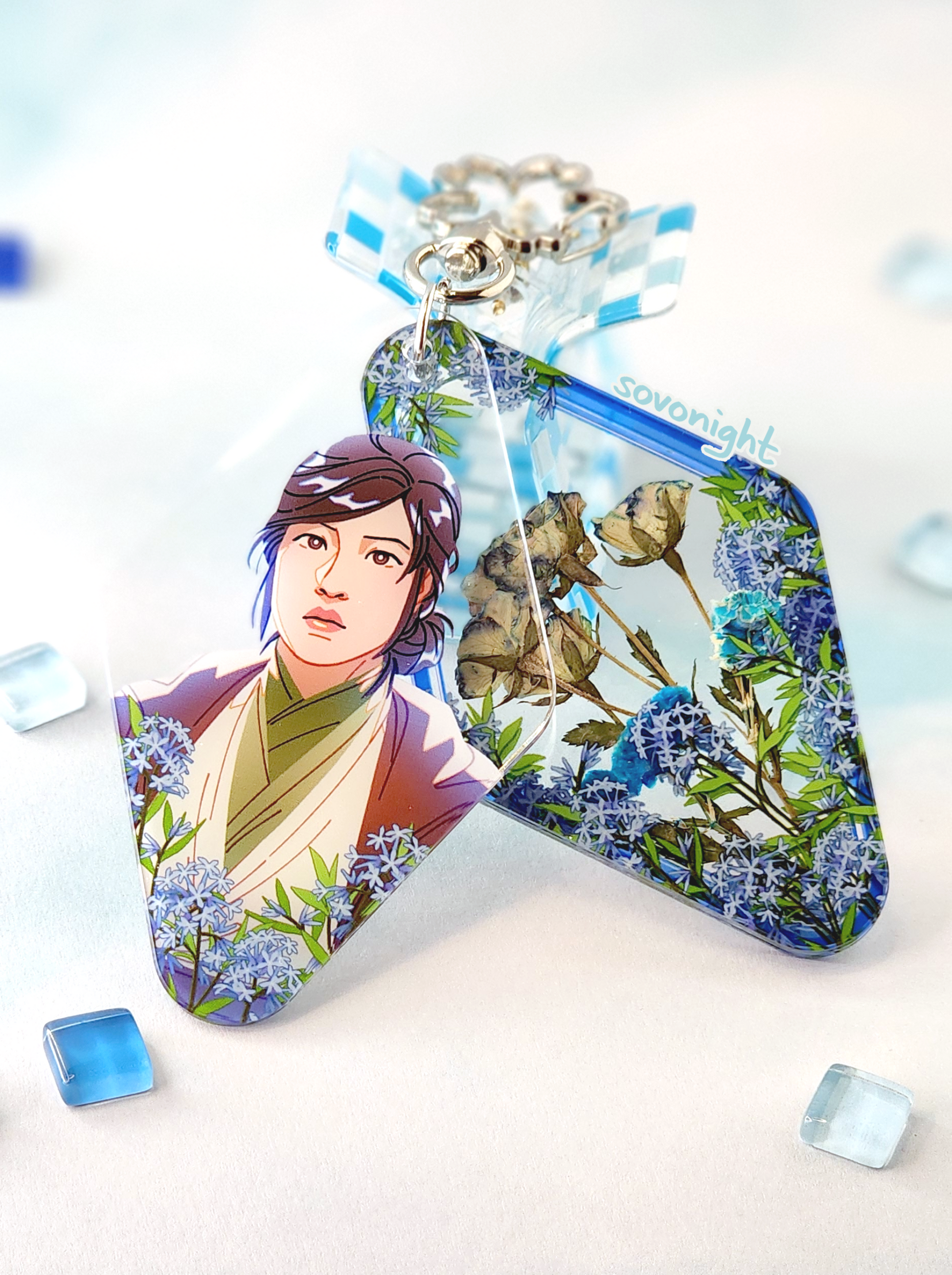 Since the dried flowers are placed by hand, the positions of the flowers may differ slightly from charm to charm.